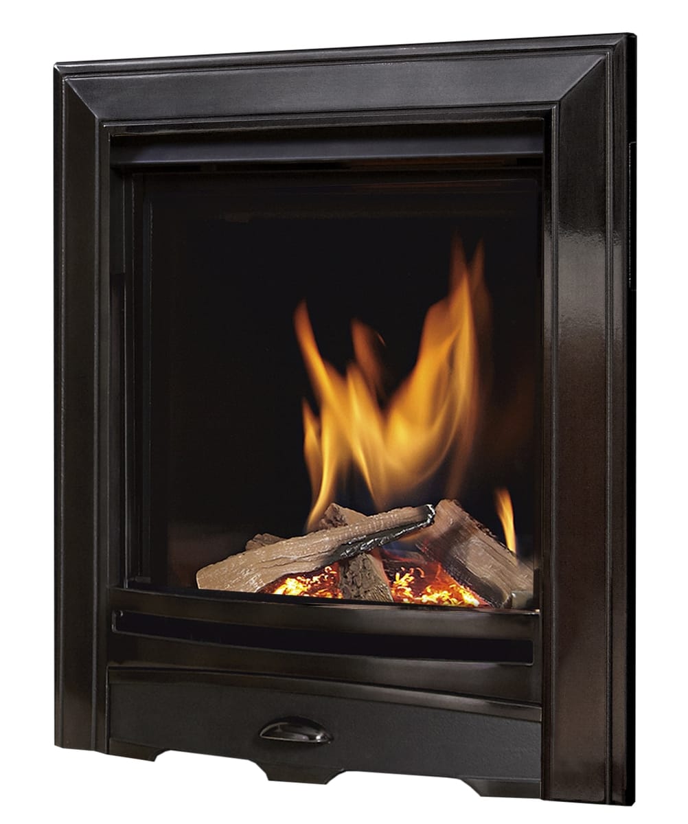 Passion HE is a market-leading gas fire with the authentic look and feel of a real log fire, combining efficiency and performance with unique style and aesthetics.  Designed with large frame wide-angle viewing, this fire displays a lively fuel effect with natural ascending tall flames that reflect in the deep glossy black enamel interior.