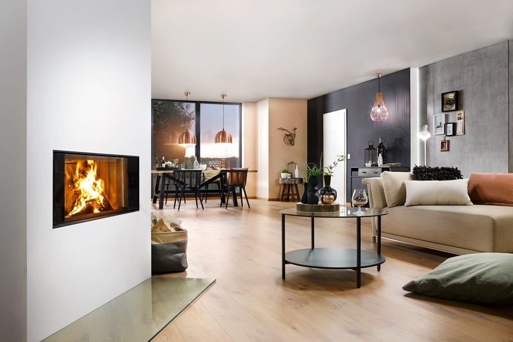Spartherm Premium built-in wood fire benefit from high quality frameless glass that gives an uninterrupted view of the log display. They also have a high build-quality and smooth action vertically sliding doors for ease of cleaning and servicing. The Premium V-ASh is a classic wood fire with high heat output and efficiency.